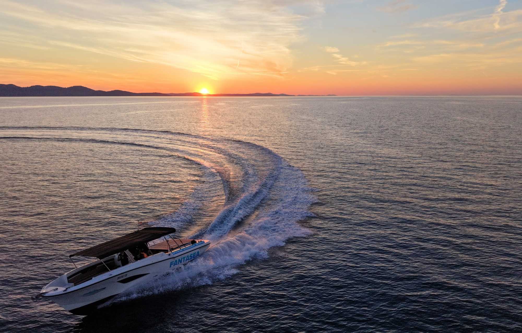 Przeżyj zachód słońca podczas rejsu motorówką premium z wybornym winem i muzyką na pokładzie!